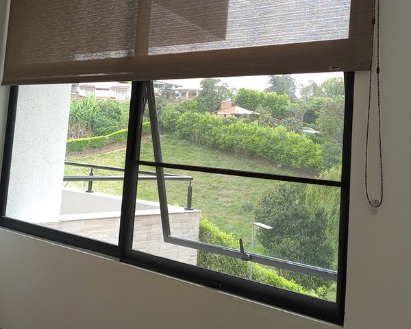 Cuenta con un mosquitero fijo y uno móvil. Así permite abrir y cerrar ventanas proyectantes, que se encuentran comúnmente en los baños.